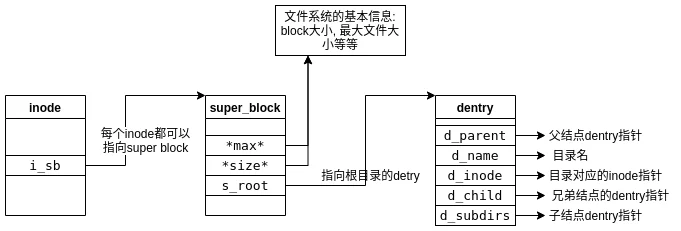 structsuper_block{structlist_heads_list;/* Keep this first */dev_ts_dev;/* search index; _not_ kdev_t */unsignedchars_blocksize_bits;unsignedlongs_blocksize;loff_ts_maxbytes;/* Max file size */structfile_system_type*s_type;conststructsuper_operations*s_op;conststructdquot_operations*dq_op;conststructquotactl_ops*s_qcop;conststructexport_operations*s_export_op;unsignedlongs_flags;unsignedlongs_iflags;/* internal SB_I_* flags */unsignedlongs_magic;structdentry*s_root;// 根结点dentry